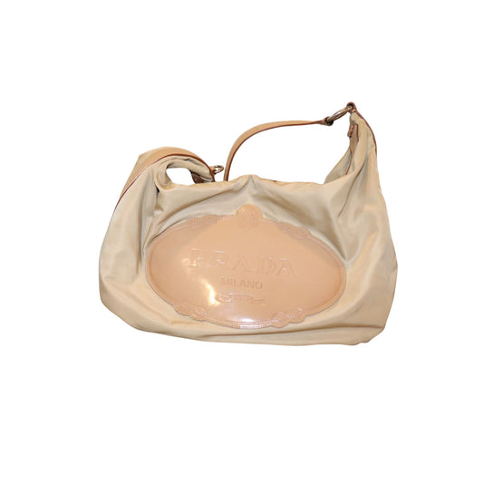 Prada Tessuto Beige Nylon & Patent Leather Hobo Shoulder Bag with COA