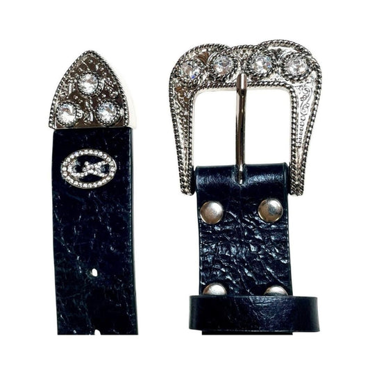 Christine Alexander Swarovski Leather Belt With Silver Buckle & Accents