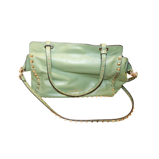 Valentino Rockstud Green Leather Tote Bag With Gold-Tone Hardware & Shoulder Strap