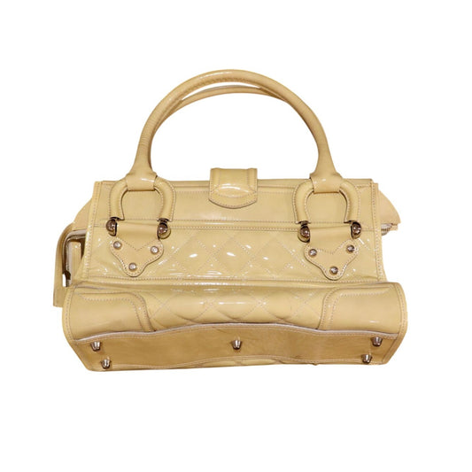 Burberry Manor Quilted Patent Leather Satchel Cream/Light Yellow With Lock & Key