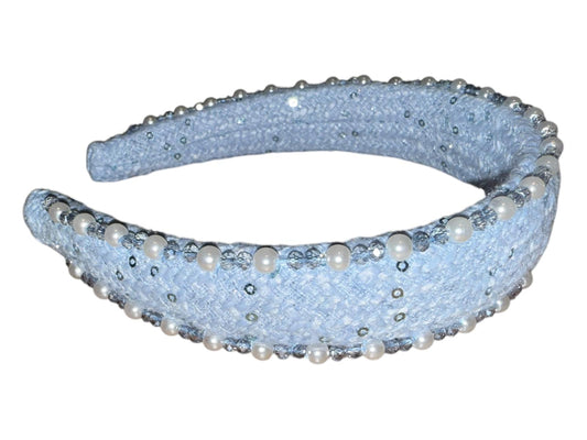 New Designer Inspired Handmade Light Blue Beaded and Pearl Embellished Headband