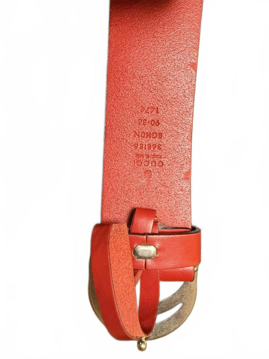 Gucci Red Leather Womens Belt with Silver GG Buckle, size 90/36