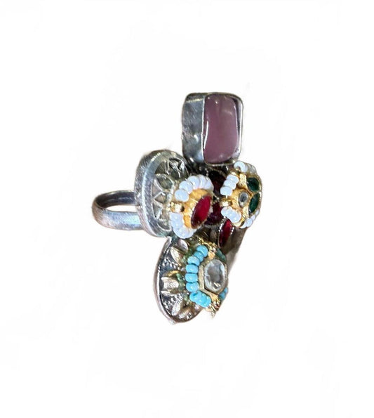 Vintage Multi-Stone and Beaded Adjustable Cocktail Ring