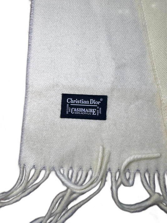 Christian Dior Vintage Cashmaire Light Yellow Scarf with Fringe