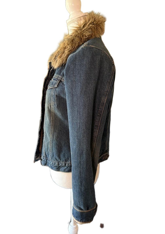 Abercrombie & Fitch Women’s Faux Fur Collar Denim Jacket Size L