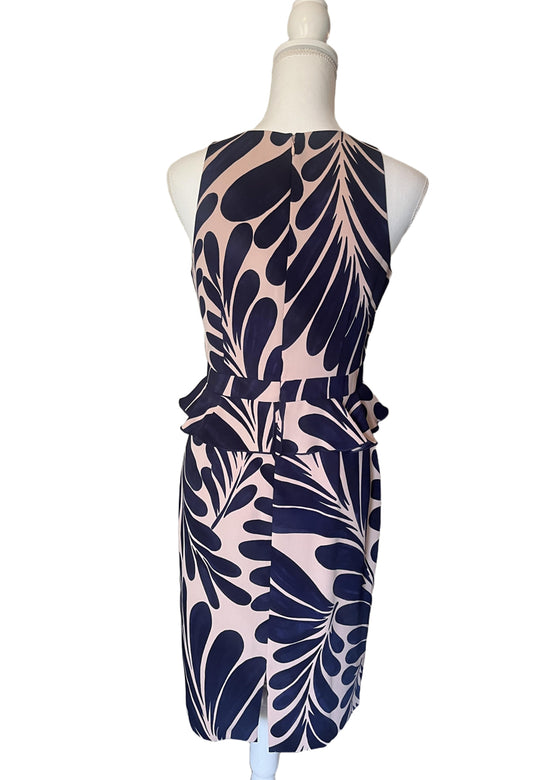 Ann Taylor Womens Size 4 Dark Blue Pink Leaf Print Peplum Sleeveless Dress