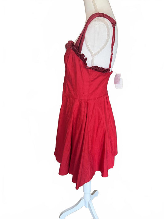 New Free People Red Sleeveless Ruffled Mini Dress, Small