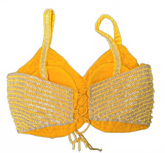 Yellow and Crystal Beaded Women's Corset Bra Top, S/M