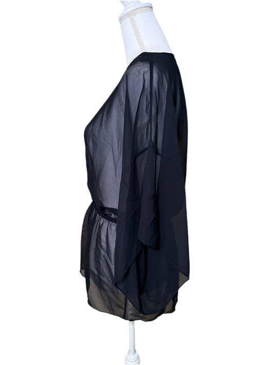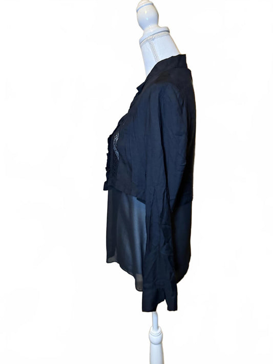 Sandro Black Sheer Long Sleeve Women's Blouse with Embroidered Detail, Large