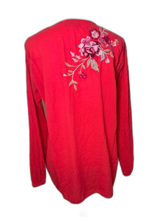 Johnny Was Sonya Floral Embroidered Popover Blouse, Size Large