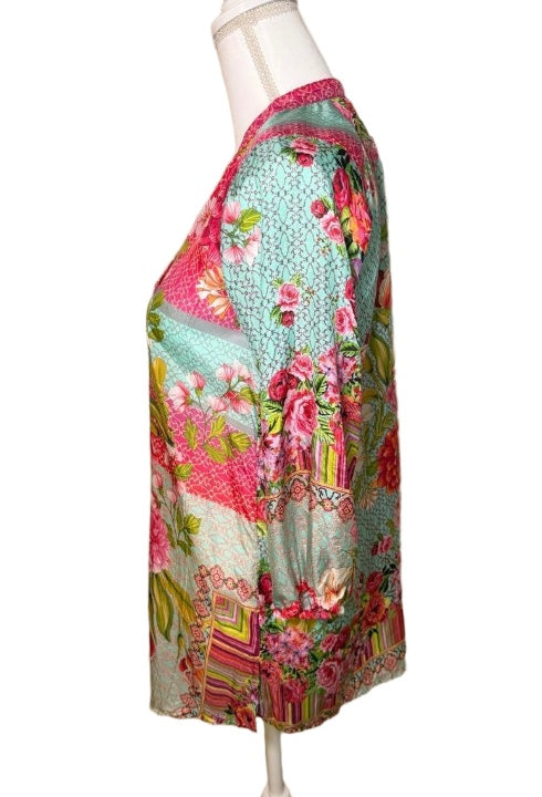 New Johnny Was Patchwork Silk Blouse , Women’s XXS (fits like small)