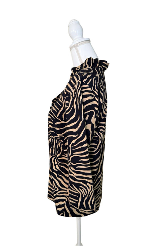 J. McLaughlin Durham Ruffle Top Zebra Print, Size XL