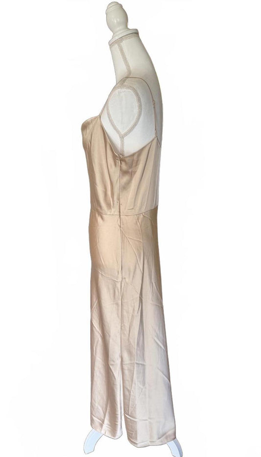 New Vince Gold Satin Slip Dress with Spaghetti Straps, Size 10