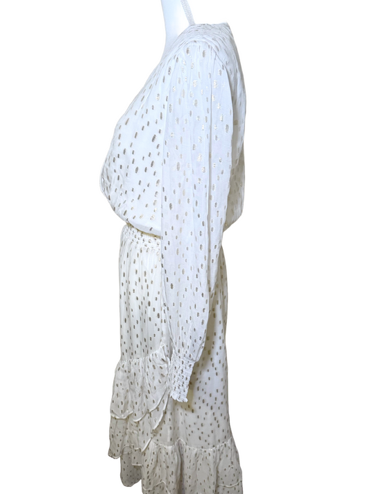 New Lulus Long Sleeve White Wrap Maxi Dress with Button Sleeve Details, Large