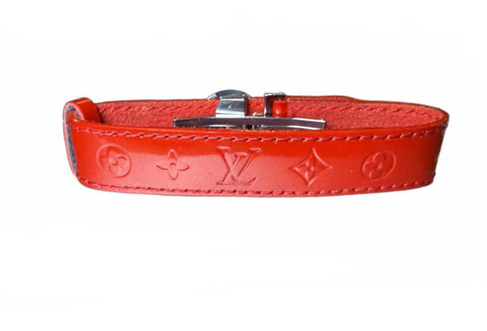 Louis Vuitton Red Leather Vernis Bracelet with Silver Flower Clasp