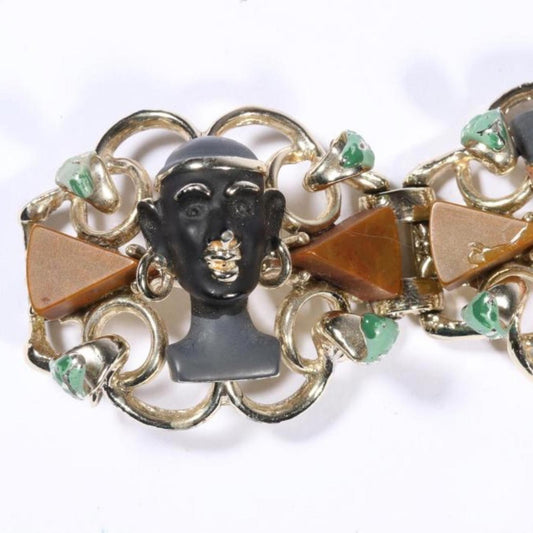 Vintage Unsigned Hobe Egyptian Revival And Bakelite Accented Bracelet