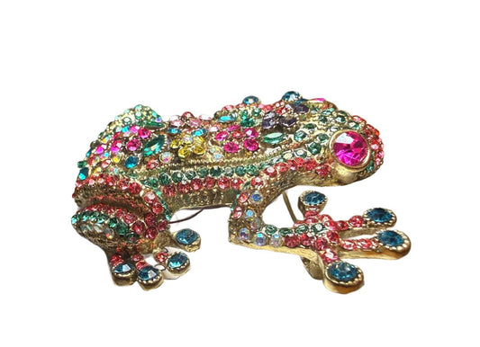 Colorful Frog Brooch with Multicolor Rhinestones