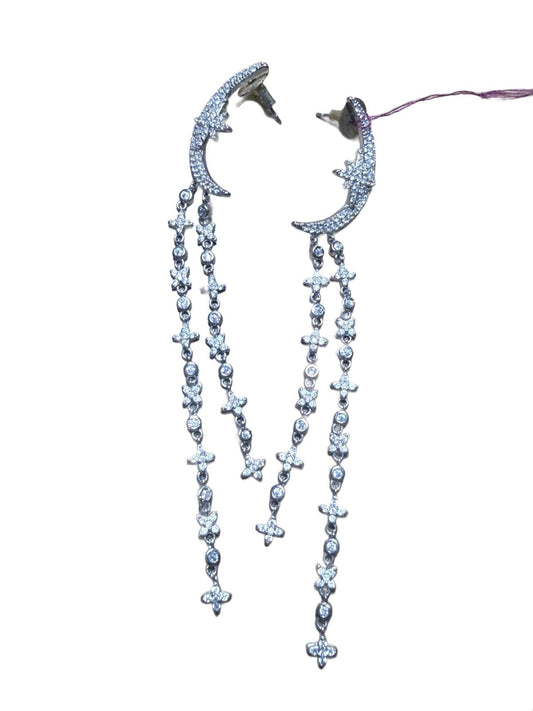 Silver Tone Crescent Moon and Cross Dangle Earrings