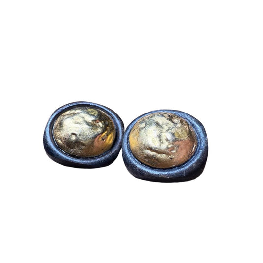 Chanel Clip On Earrings Gold Dark Vintage Sculpted Face Design Classic Chic
