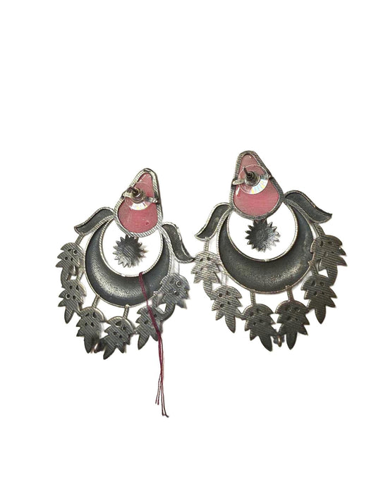 Oxidized Silver Tone and Pink Stone Earrings