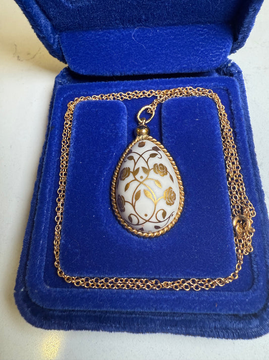 Vintage 1978 Franklin Mint Easter Egg Pendant Necklace – Bisque Porcelain & 24K Gold