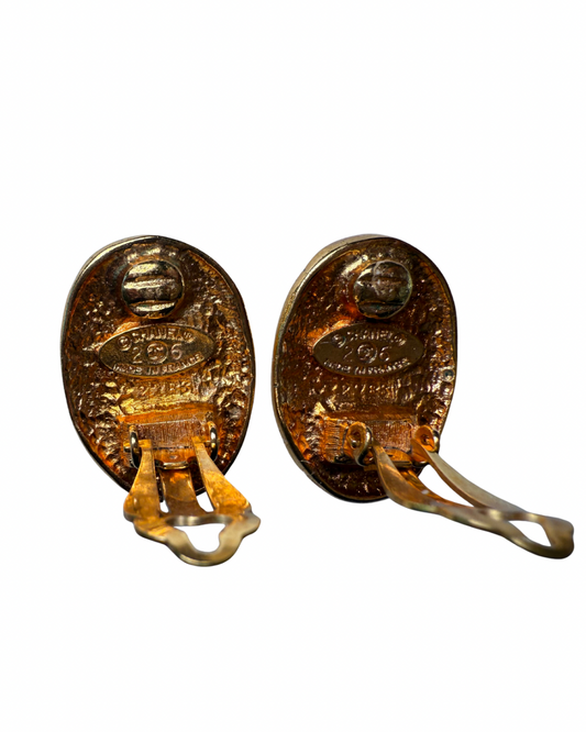 Vintage Chanel Gold Plated Oval Clip-On Earrings (Circa 1986–1988)