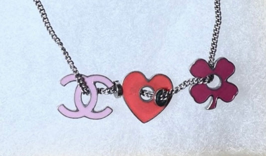 Chanel Vintage Charm Bracelet – Sterling Silver with Pink CC, Red Heart & Clover Charms