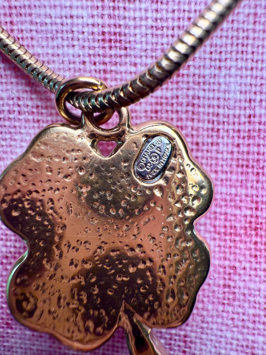 Long Chanel Coral Clover Pendant Necklace