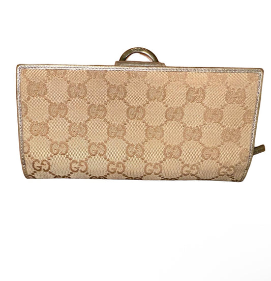 Gucci Wallet Womens Beige Metallic Gold Continental GG Canvas