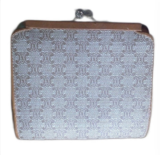 Vintage CELINE Macadam Kiss Lock Wallet Beige Gold Hardware