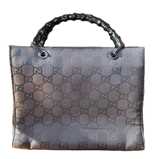 Gucci Womens Brown and Black GG Canvas Bamboo Top Handle Tote