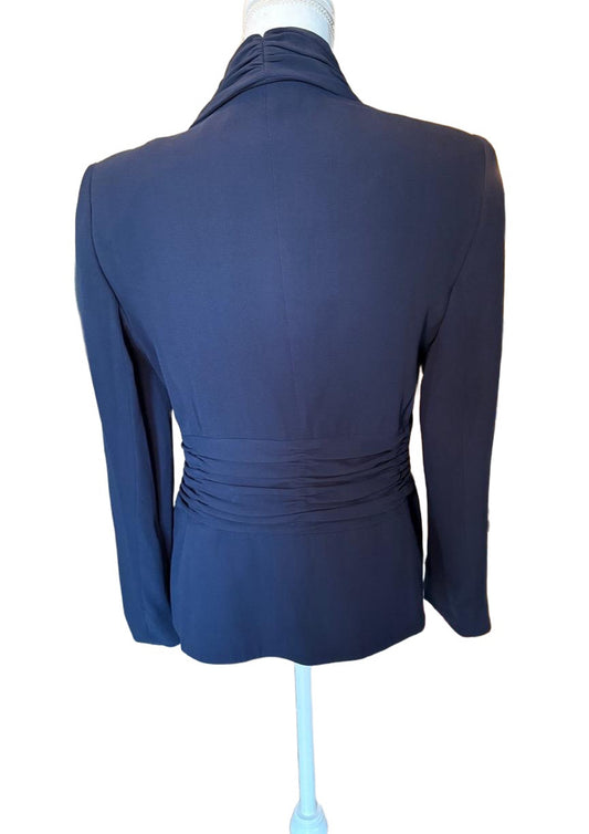 Dark Navy Escada Draped Blazer Rhinestone Clasp Evening Formal, Size 40