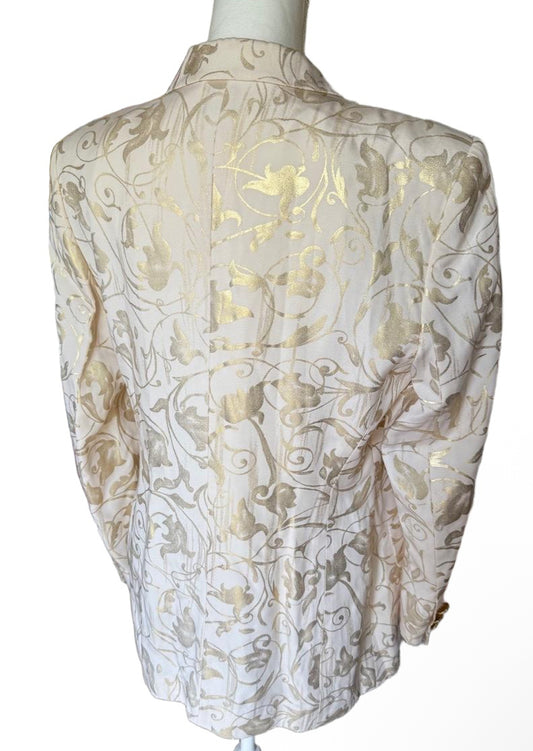 Escada Womens Cream Gold Brocade Blazer Double Breasted Size 40 (oversized)