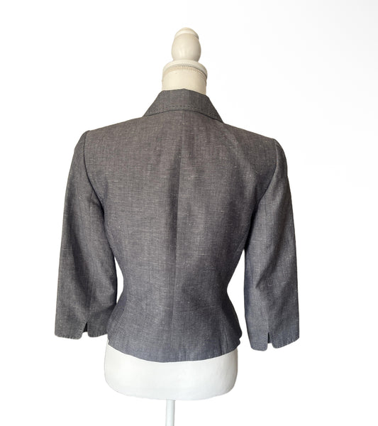 Tahari Blazer Womens Size 4 Grey 3/4 Sleeve