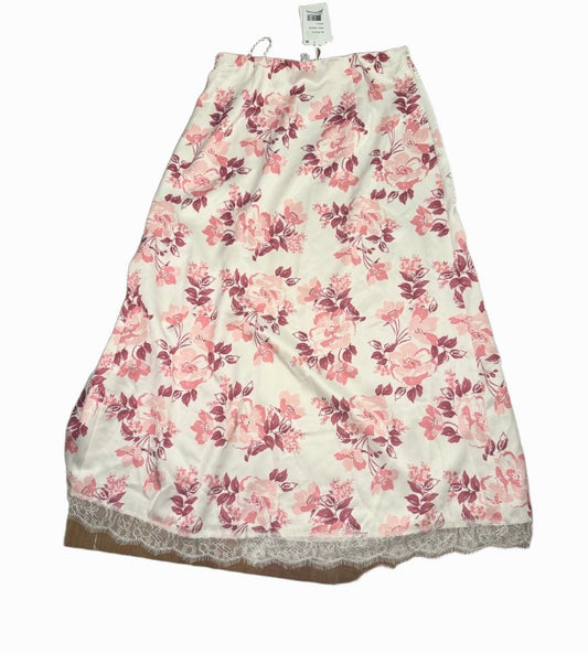 New LucyParis Womens Small Pink Cream Floral Maxi Skirt Slit Lace Boho