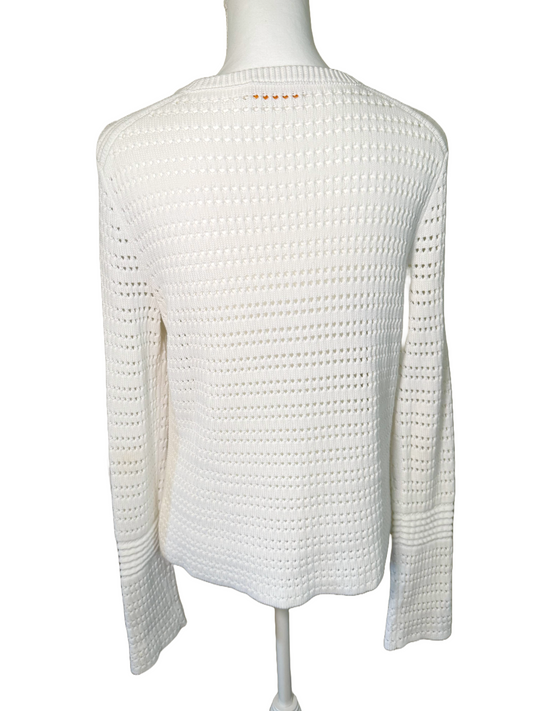 Tory Burch White Cotton Open Knit Sweater – Size Small