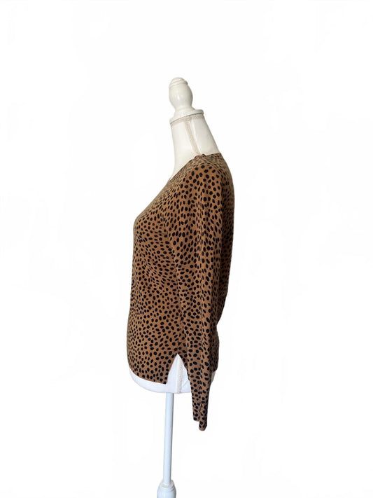 JCREW Brown and Black Spotted Long Sleeve Cashmere Sweater, XS