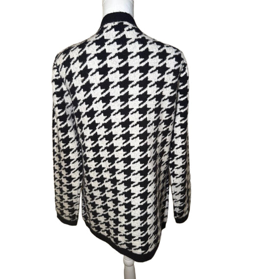 New L'AGENCE Womens Cardigan Black White Houndstooth, Large