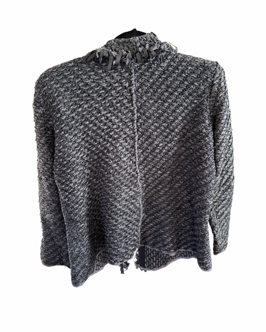 Armani Collezioni Gray Black Woven Crochet Fringe Sweater, size 12