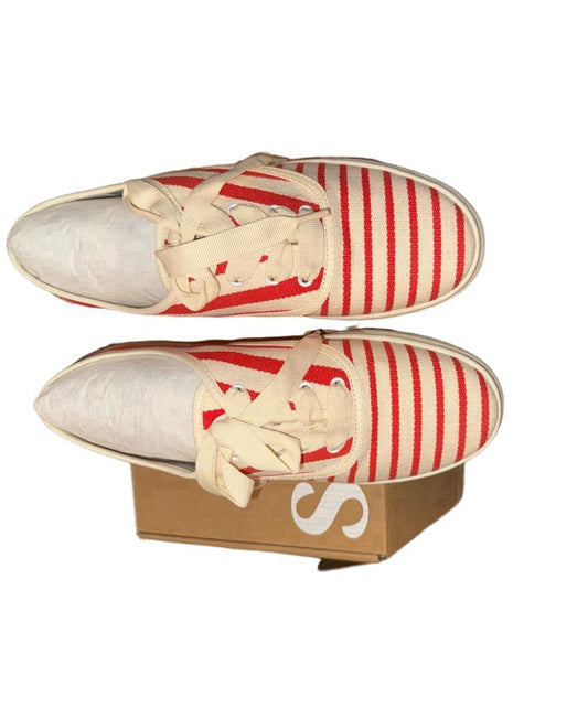 New Soludos Women’s Sneakers – Size 9, Red & Off-White Striped Canvas Lace-Up