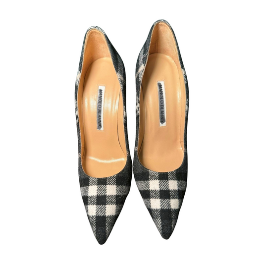 New Manolo Blahnik Womens Pumps Size 5.5 Grey Plaid Pointed Toe Stiletto