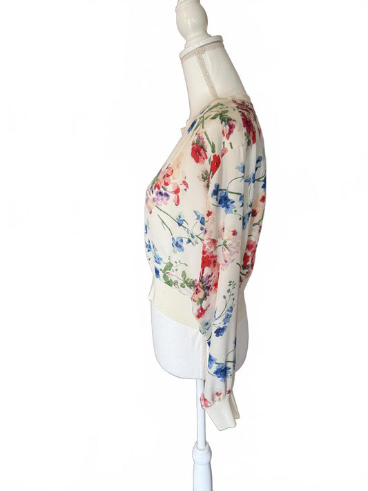 New Theory Floral Print Long Sleeve Blouse, Size Petite Small