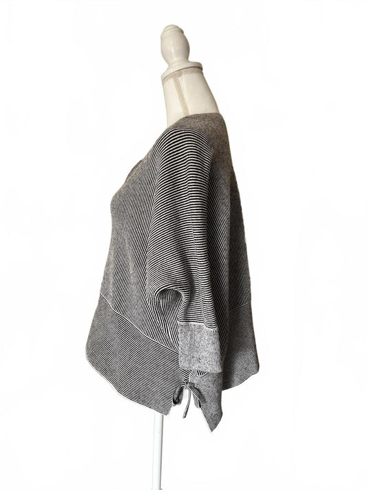 CAbi Women's Black and White Striped Zip-Up Sweater