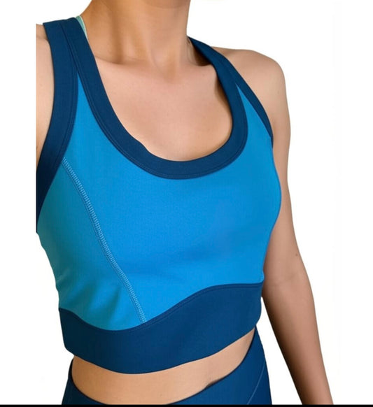 New Spiritual Gangster Sports Bra, Size L – Two-Tone Teal Aurora Racerback w/ Gold Hamsa Logo