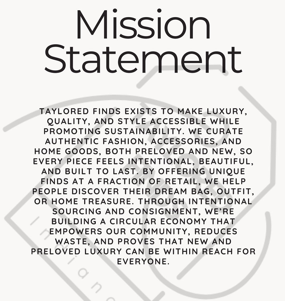 At Taylored Finds Indiana, we curate a mix of luxury, vintage, and contemporary pieces, combining our own carefully sourced inventory with consigned treasures from our community. Founded by Kara in Zionsville, Indiana, and supported by Laura, our Consignment Manager, we handle every item with care, from authenticating and photographing to creating accurate listings. Our mission is simple: make luxury resale stylish, sustainable, and accessible while giving each piece a second life.