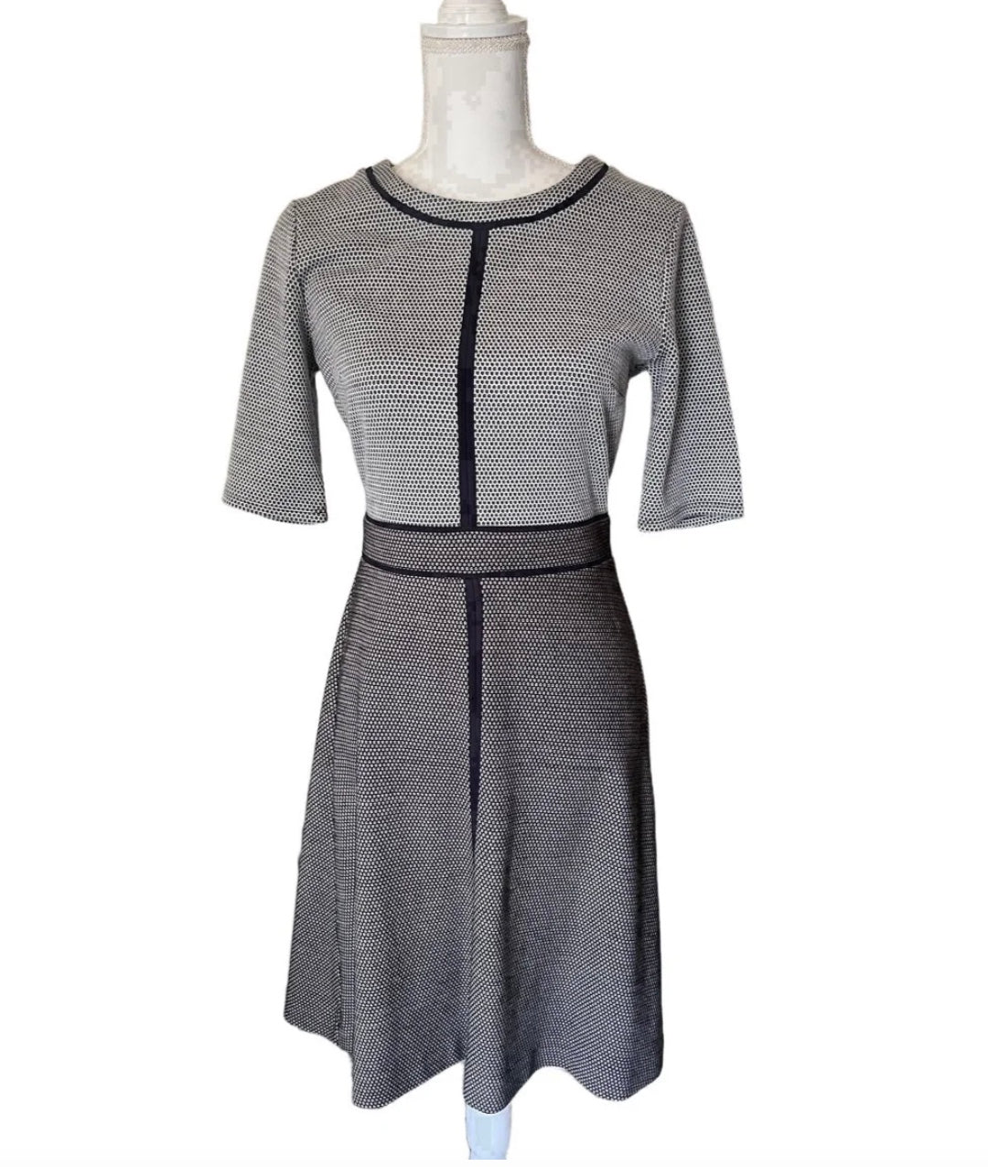 ANN TAYLOR Dress Womens Size 4 Black White Geometric Sheath Short Sleeve Professional Career