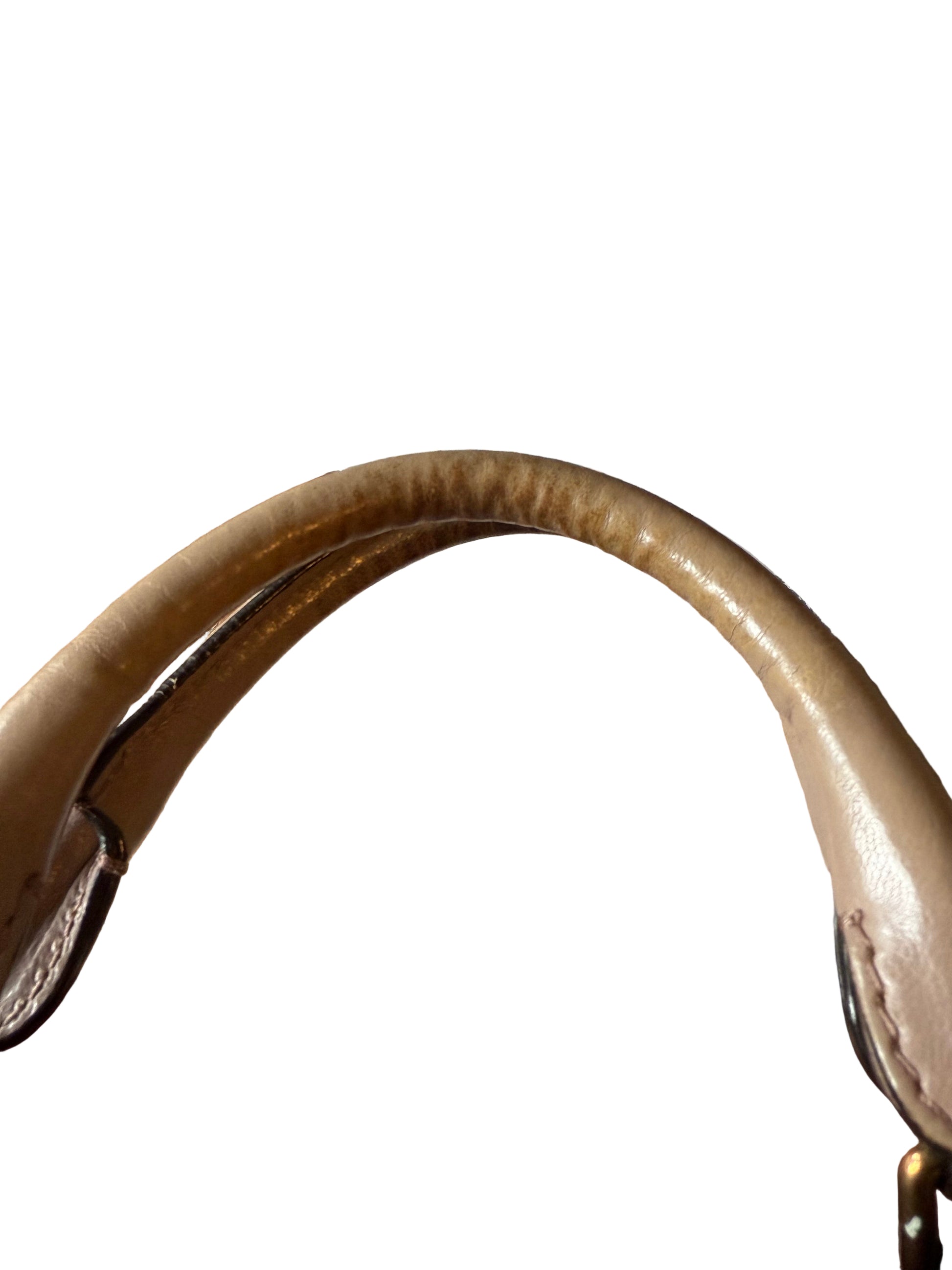 Discover timeless elegance with the preloved Chloe Harley Handbag, featuring a stylish combination of canvas and brownish-gray leather details. Minor wear to leather and discoloration on handles but overall in great condition and very clean. Designed for versatility, it includes both a convenient crossbody strap and a sturdy handle. The gentle wear on the leather adds unique character, making this bag a one-of-a-kind statement piece. Elevate your wardrobe with this chic, functional accessory that blends classic charm with everyday practicality.