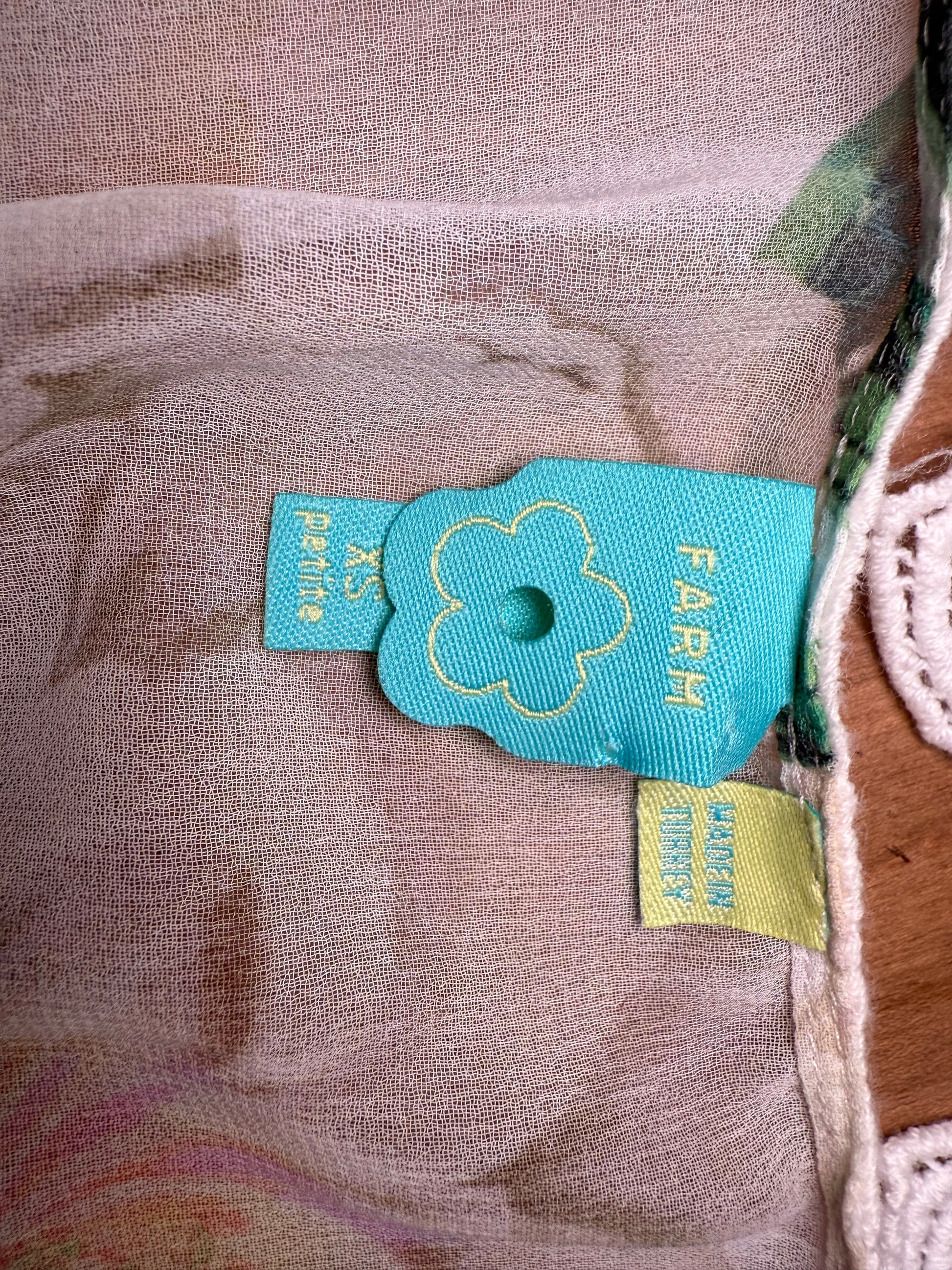 Farm Rio Dahlia Floral Crochet Trim Maxi Dress, Size XS