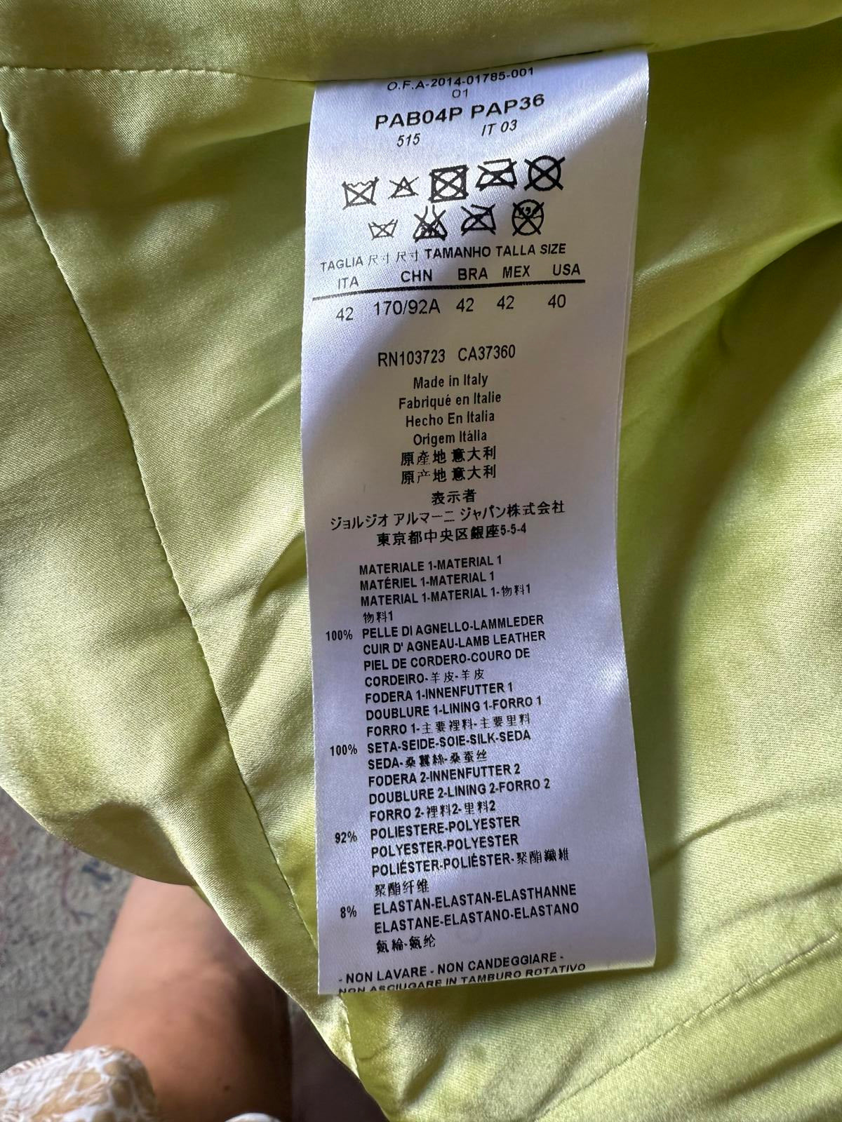 Georgio Armani Light Green Lamb Leather Jacket, IT 42