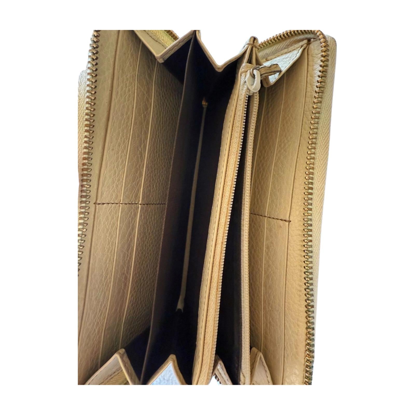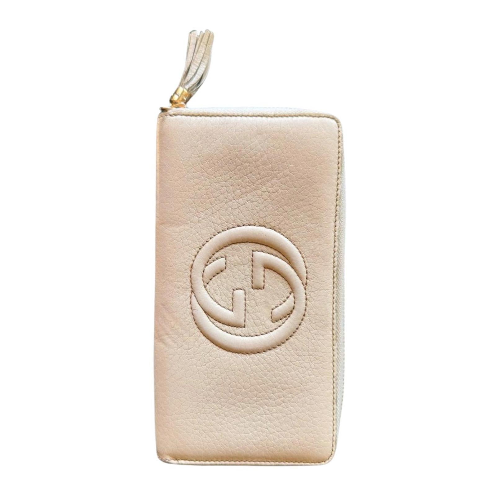 Gucci Ivory Pebbled Long Leather Zip-Around Soho Wallet
